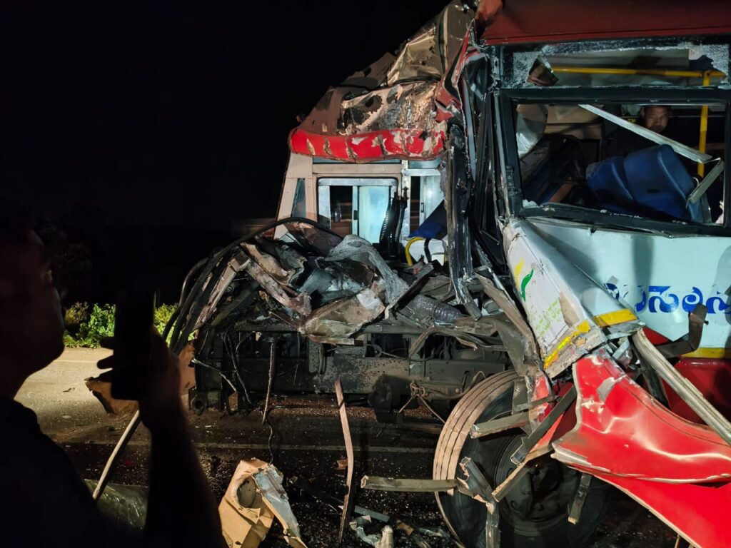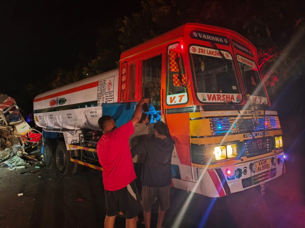 ಪೆಟ್ರೋಲ್ ಟ್ಯಾಂಕರ್ ಗೆ ಸರ್ಕಾರಿ ಬಸ್ ಢಿಕ್ಕಿ…5 ಮಂದಿ ಗಂಭೀರ…