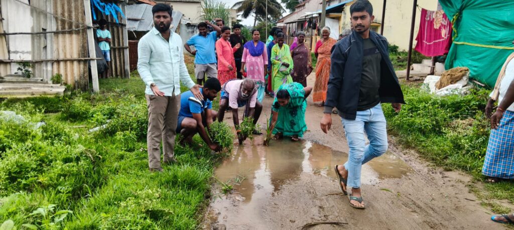 ರಸ್ತೆ ಗುಂಡಿಗಳಿಗೆ ನಾಟಿ ಮಾಡಿ ಪರಿಸ್ಥಿತಿ ಬಗ್ಗೆ ವ್ಯಂಗ್ಯವಾಡಿದ್ದಾರೆ…