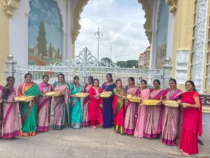 ಕರುಣೆ ಸೇವಾ ಟ್ರಸ್ಟ್ ವತಿಯಿಂದ ಕೋಟೆ ಆಂಜನೇಯ ಸ್ವಾಮಿ ದೇವಸ್ಥಾನದ ಮುಂಭಾಗ ಅರಮನೆಯಲ್ಲಿ ಸ್ವಚ್ಛತಾ ಕಾರ್ಯನಿರ್ವಹಿಸುತ್ತಿರುವ ಪೌರಕಾರ್ಮಿಕ ಮಹಿಳೆಯರಿಗೆ ಬಾಗಿನ ನೀಡಿ ಗೌರವಿಸಲಾಯಿತು.