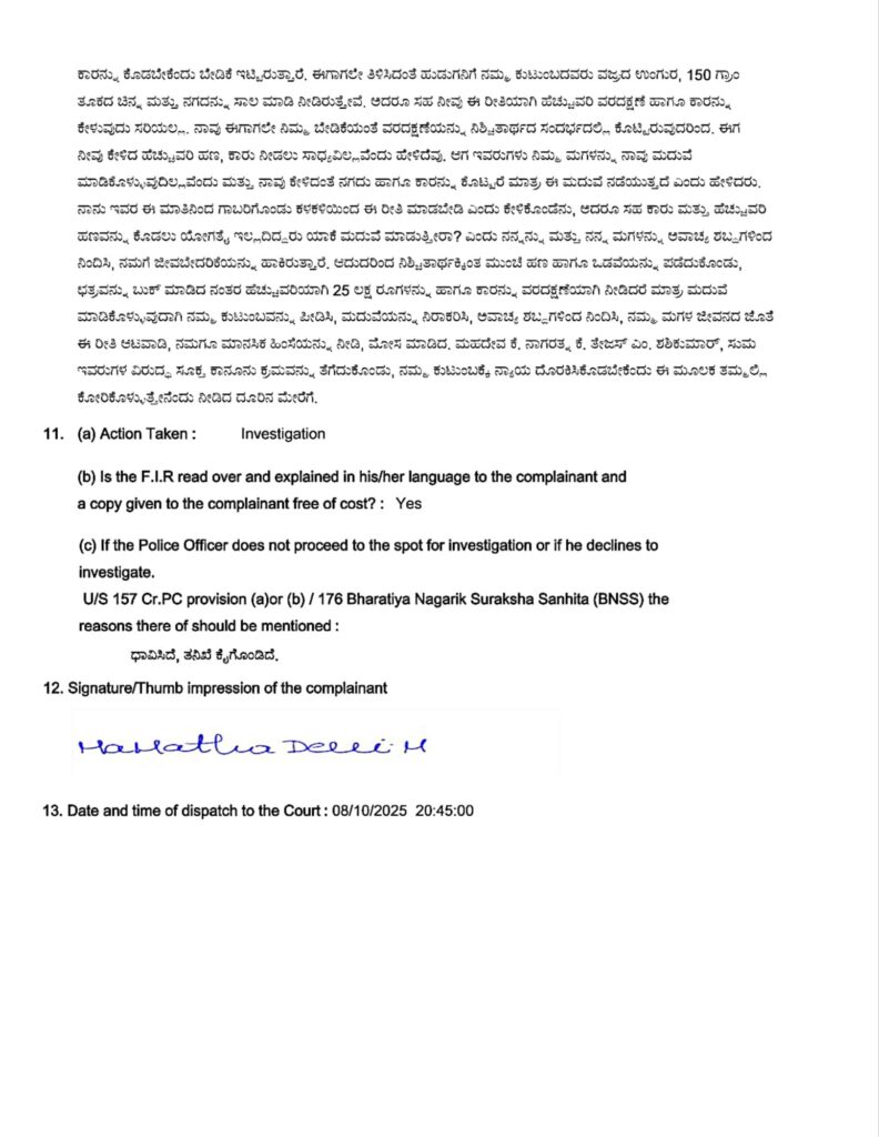 ತಾಳಿ ಕಟ್ಟಲು 25 ಲಕ್ಷ ಕ್ಯಾಶ್ ಹಾಯುಂಡೈ ಕಾರಿಗೆ ಡಿಮ್ಯಾಂಡ್…ಮುರಿದುಬಿದ್ದ ಮದುವೆ…ಮದುವೆ ಗಂಡು ಸೇರಿದಂತೆ 5 ಮಂದಿ ವಿರುದ್ದ FIR ದಾಖಲು…