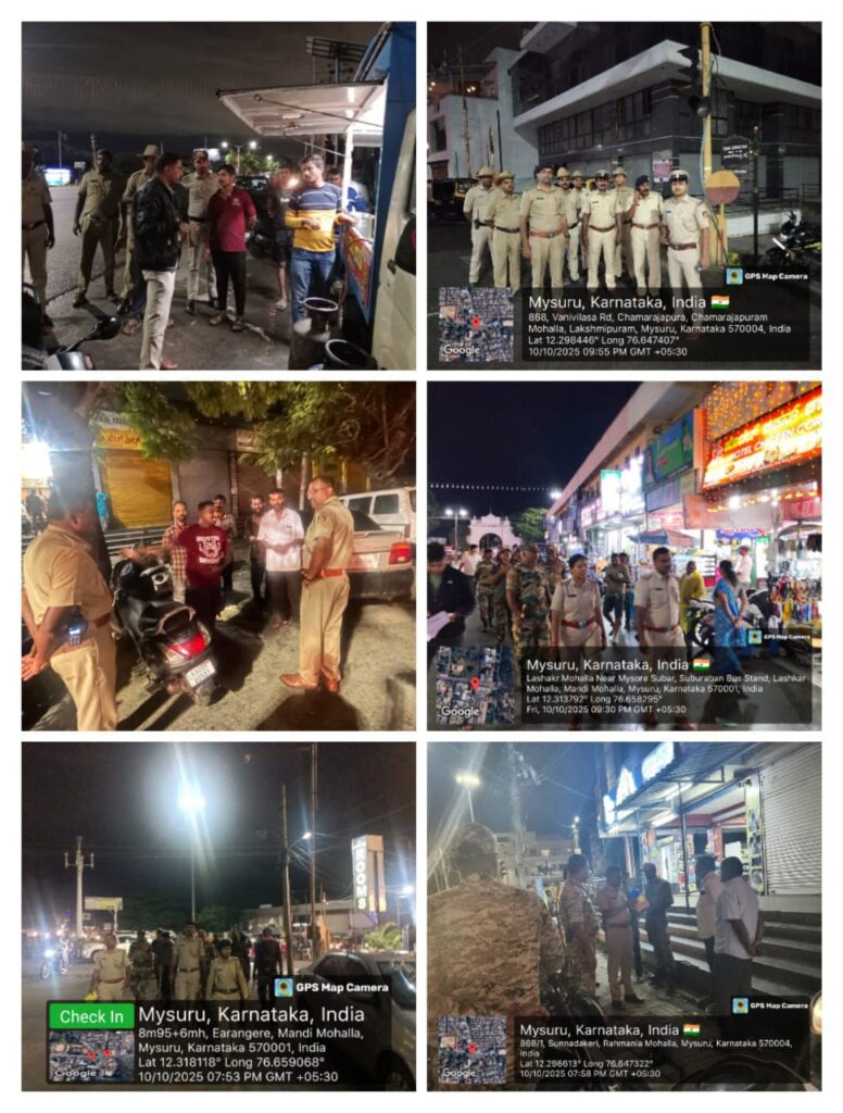 ದಿನಾಂಕ 10/10/2025 ರಿಂದ ಮೈಸೂರು ನಗರದಲ್ಲಿ ವಿಶೇಷ ಕಾರ್ಯಾಚರಣೆ ಆರಂಭಿಸಲಾಗಿದೆ.ಮೈಸೂರಿನ ಉದ್ಯಾನವನಗಳು, ಬಾರ್, ವೈನ್ ಸ್ಟೋರ್ಗಳು, ಟೀ ಅಂಗಡಿಗಳು, ಹೋಟೆಲ್ಗಳು, ಬೀದಿ ಬದಿ ಅಂಗಡಿಗಳು ಸೇರಿ ಎಲ್ಲಾ ಸ್ಥಳಗಳಲ್ಲಿ ಪೊಲೀಸರು ತಪಾಸಣೆ ನಡೆಸಿ ಕಟ್ಟೆಚ್ಚರ ವಹಿಸಿದ್ದಾರೆ.