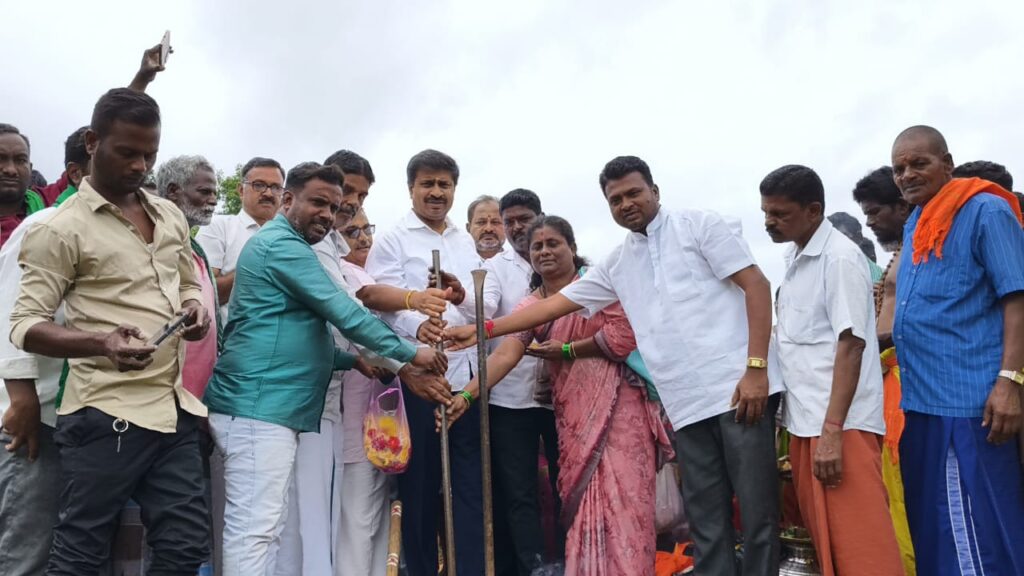 ದೇವಸ್ಥಾನಕ್ಕೆ ತೆರಳುವ ಮಾರ್ಗ ಪ್ರವೇಶ ಮುಖ್ಯ ದ್ವಾರ ಹಾಗೂ ರಸ್ತೆ ನಿರ್ಮಾಣಕ್ಕೆ ಭೂಮಿ ಪೂಜೆ ನೆರವೇರಿಸಿದ ಶಾಸಕ ಎಂ ಆರ್ ಮಂಜುನಾಥ್.