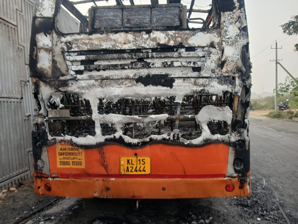 ಸುಟ್ಟು ಕರುಕಲಾದ KSRTC ಬಸ್…ಅದೃಷ್ಟವಶಾತ್ ಪ್ರಯಾಣಿಕರು ಪಾರು…