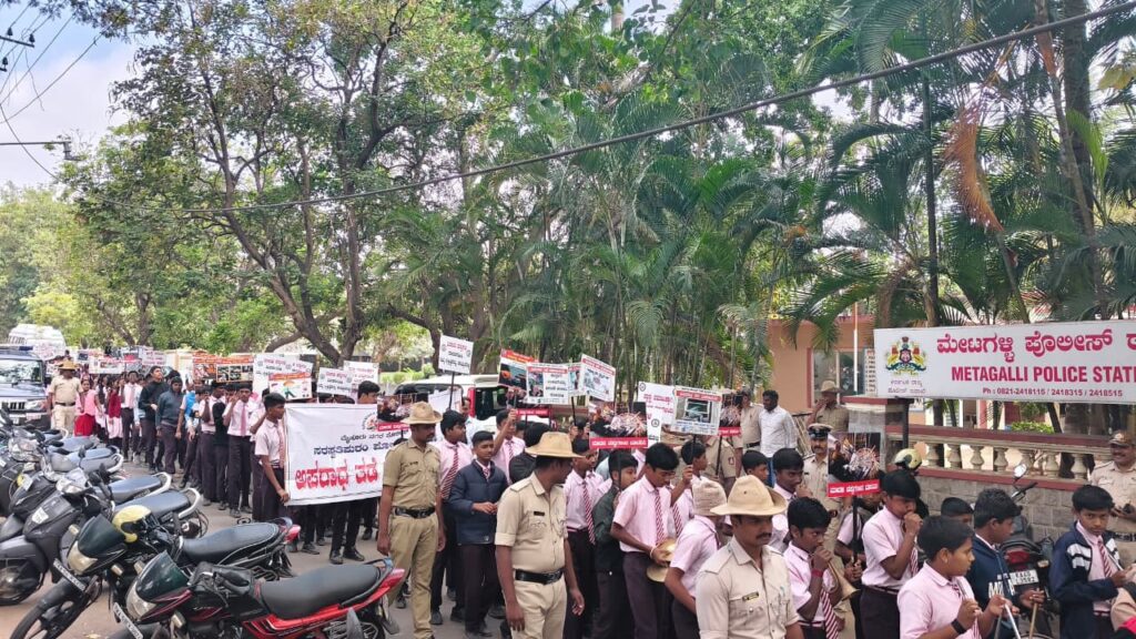 ಅಪರಾಧ ತಡೆ ಮಾಸಾಚರಣೆ ಹಿನ್ನಲೆ ಮೈಸೂರು ನಗರ ಪೊಲೀಸರು ವಿಶೇಷ ಕಾರ್ಯಾಚರಣೆ ಕೈಗೊಂಡಿದ್ದಾರೆ. ವಿಜಯನಗರ ಉಪವಿಭಾಗದ ಪೊಲೀಸರು ಕಿಡಿಗೇಡಿಗಳು,ಸಮಾಜಘಾತುಕರ ಹೆಡೆ ಮುರಿಯಲು ಎಂದಿಗೂ ಸಿದ್ದ ಎಂಬ ಸಂದೇಶ ಹೊರಡಿಸಿದ್ದಾರೆ.ಈಗಾಗಲೇ ಶಾಲಾ ಮಕ್ಕಳ ಸಮೇತ ಜಾಥಾ ನಡೆಸಿ ಸಾರ್ವಜನಿಕರಲ್ಲಿ ಜಾಗೃತಿ ಮೂಡಿಸಲಾಗಿದೆ.ಮೇಟಗಳ್ಳಿ ಠಾಣೆಯಿಂದ ಆರಂಭವಾದ ಜಾಗೃತಿ ಜಾಥಾ ಹೆಬ್ಬಾಳ್ ಪೊಲೀಸ್ ಠಾಣಾ ವ್ಯಾಪ್ತಿಯಲ್ಲಿ ಕೊನೆಗೊಂಡಿದೆ.ವಿಜಯನಗರ ಉಪವಿಭಾಗದ ಎಸಿಪಿ ರವಿಪ್ರಸಾದ್ ರವರ ನೇತೃತ್ವದಲ್ಲಿ ಮೇಟಗಳ್ಳಿ ಠಾಣೆಯ ಇನ್ಸ್ಪೆಕ್ಟರ್ ಅರುಣ್ ರವರು ತಮ್ಮ ಸಿಬ್ಬಂದಿಗಳ ಜೊತೆ ಮೇಟಗಳ್ಳಿ ಸ್ಮಶಾನಕ್ಕೆ ರಾತ್ರಿ ವೇಳೆ ಧಿಢೀರ್ ಭೇಟಿ ಕೊಟ್ಟಿದ್ದಾರೆ.ಸ್ಮಶಾನದಲ್ಲಿ ಅನೈತಿಕ ಚಟುವಟಿಕೆಗಳು,ಗಾಂಜಾ ಸೇವನೆ ಇಂತಹ ಮುಂತಾದ ಪ್ರಕರಣಗಳ ಬೆಳಕಿಗೆ ಬಂದಿರುವ ಹಿನ್ನಲೆ ಧಿಢೀರ್ ಭೇಟಿಕೊಟ್ಟಾಗ ಇಲ್ಲಿ ಮತ್ತೆ ವಿದ್ಯುತ್ ಕೈಕೊಟ್ಟಿದೆ.ಸಮರ್ಪಕ ವಿದ್ಯುತ್ ವ್ಯವಸ್ಥೆ ಇಲ್ಲದಿರುವುದೇ ಕಿಡಿಗೇಡಿಗಳಿಗೆ ಅನುಕೂಲವಾಗಿದೆ ಎಂಬ ಆರೋಪ ಇದೆ.ಕೆಲವು ದಿನಗಳ ಹಿಂದಷ್ಟೇ ವಿದ್ಯುತ್ ಸಂಪರ್ಕ ನೀಡಲಾಗಿತ್ತು.ಇದೀಗ ಮತ್ತೆ ವಿದ್ಯುತ್ ಕೈಕೊಟ್ಡ ಹಿನ್ನಲೆ ಕಾರ್ಯಾಚರಣೆಗೆ ಅಡ್ಡಿಯಾಗಿದೆ.