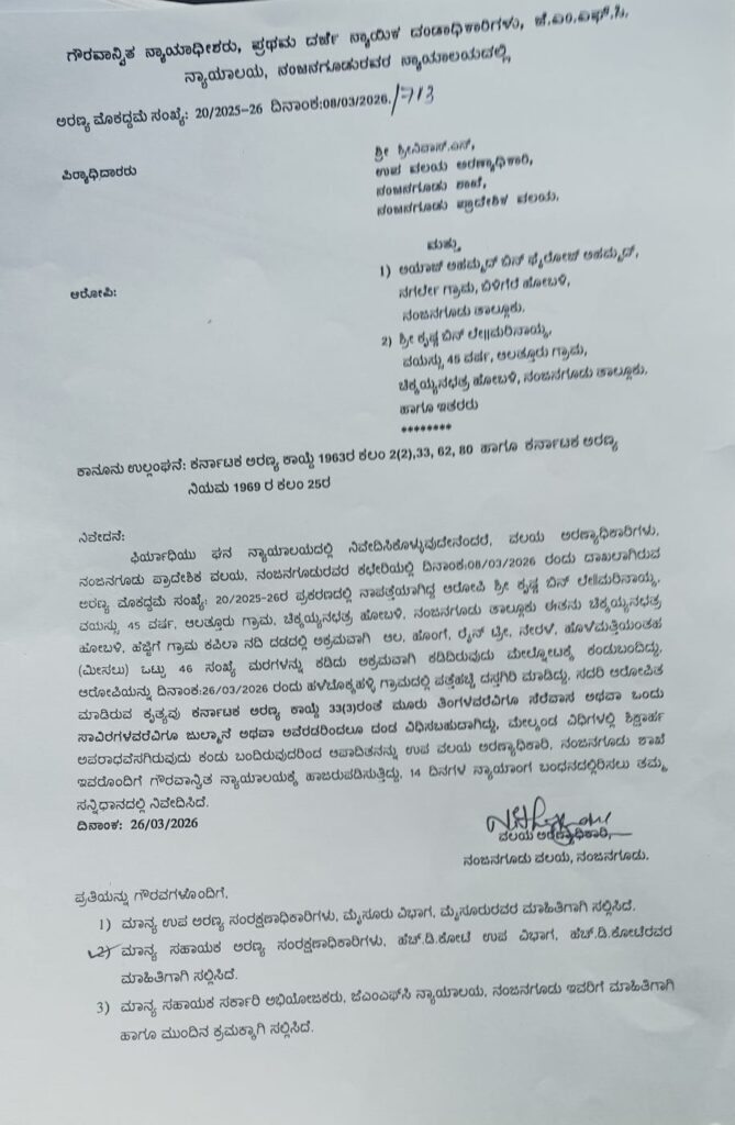 ಕೊನೆಗೂ ನಂಜನಗೂಡು ವಲಯ ಅರಣ್ಯ ಇಲಾಖೆ ಅಧಿಕಾರಿಗಳು ಎಚ್ಚೆತ್ತುಕೊಂಡಿದ್ದಾರೆ.ಕಪಿಲಾ ನದಿ ದಂಡೆಯ ಸರ್ಕಾರಿ ಜಮೀನಿನಲ್ಲಿ ಬೆಳೆದಿದ್ದ ಭಾರಿ ಮರಗಳಿಗೆ ಕೊಡಲಿ ಹಾಕಿದ ಆರೋಪಿಯೊಬ್ಬನನ್ನ ಬಂಧಿಸುವಲ್ಲಿ ಯಶಸ್ವಿಯಾಗಿದ್ದಾರೆ.ಆಲತ್ತೂರು ಗ್ರಾಮದ ಕೃಷ್ಣ(45) ಬಂಧಿತ ಆರೋಪಿ.ಮಾರ್ಚ್ 8 ರಂದು ಹೆಜ್ಜಿಗೆ ಗ್ರಾಮ ಕಪಿಲಾ ನದಿ ದಂಡೆಯಲ್ಲಿ ಬೆಳೆದಿದ್ದ 45 ವಿವಿದ ಜಾತಿಯ ಮರಗಳನ್ನ ಯಾವುದೇ ಅನುಮತಿ ಪಡೆಯದೆ ಅಕ್ರಮವಾಗಿ ಕಡಿದುಹಾಕಲಾಗಿತ್ತು.ಈ ಸಂಬಂಧ ಮಾಧ್ಯಮಗಳಲ್ಲಿ ಸುದ್ದಿಯಾಗಿ ಚರ್ಚೆಗೆ ಗ್ರಾಸವಾಗಿತ್ತು.ಪ್ರಕರಣ ನಡೆದು ಹಲವು ದಿನಗಳಾದರೂ ಅರಣ್ಯ ಇಲಾಖೆ ಯಾವುದೇ ಕ್ರಮ ಕೈಗೊಂಡಿರಲಿಲ್ಲ.ಅರಣ್ಯ ಸಚಿವ ಈಶ್ವರ್ ಖಂಡ್ರೆ ಇಲಾಖೆ ಹಿರಿಯ ಅಧಿಕಾರಿಗಳಿಗೆ ಮಾರ್ಚ್ 10 ರಂದು ಪತ್ರ ಬರೆದು ಕ್ರಮ ಕೈಗೊಳ್ಳುವಂತೆ ಖಡಕ್ ವಾರ್ನಿಂಗ್ ನೀಡಿದ್ದರು.ಘಟನೆ ನಡೆದು 17 ದಿನಗಳ ನಂತರ ಎಚ್ಚೆತ್ತ ಅಧಿಕಾರಿಗಳು ಓರ್ವನನ್ನ ಬಂಧಿಸಿದ್ದಾರೆ…