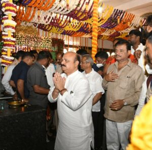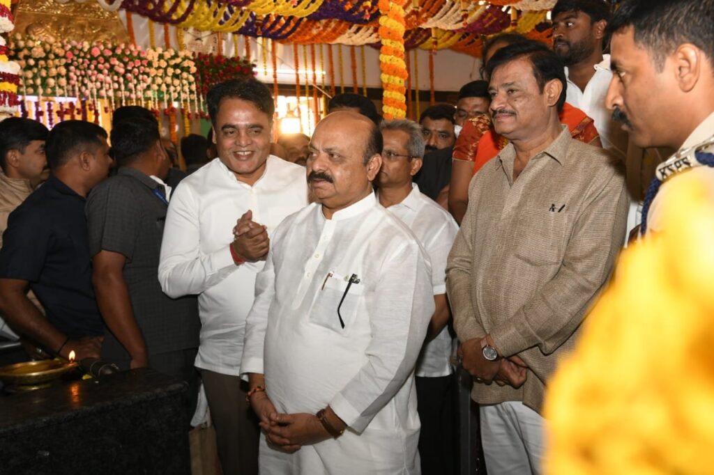 ಮುಖ್ಯಮಂತ್ರಿ @BSBommai ಅವರು ಇಂದು ಬೆಂಗಳೂರಿನ  ವೈಯಾಲಿ ಕಾವಲ್ ನಲ್ಲಿರುವ ತಿರುಮಲ ತಿರುಪತಿ ದೇವಸ್ಥಾನಕ್ಕೆ ಭೇಟಿ ನೀಡಿ ದೇವರ ದರ್ಶನ ಪಡೆದರು.